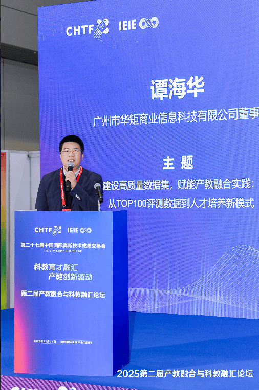 2025年11月14日,通过 “三元制”模式建立人才供应链的摸索,广州市华矩贸易消息科技无限公司董事长谭海华和深圳市中元产教融合科技无限公司总司理菅毅别离发布了基于数据研究的TOP100榜单和评测阐发解读,本届论坛以“科教育才融汇。